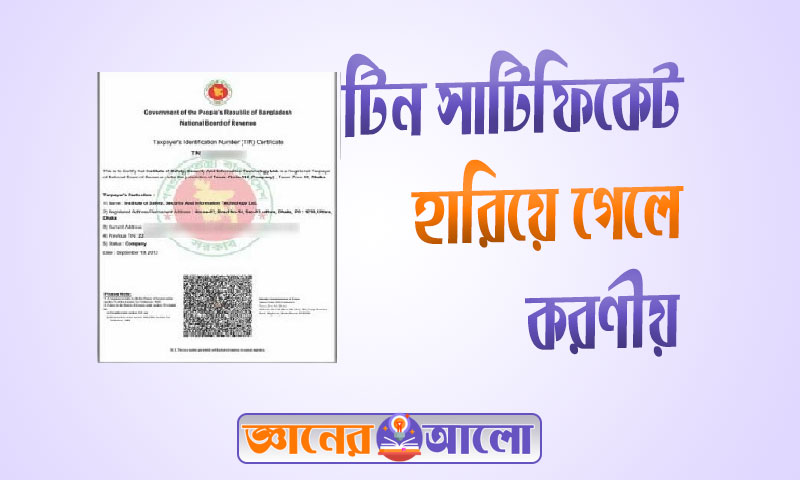 কোনো কারণে টিন সার্টিফিকেট হারিয়ে গেলে কিংবা নষ্ট হয়ে গেলে অনলাইন থেকে হারানো টিন সার্টিফিকেট বের করার ২ টি পদ্ধতি রয়েছে ।যেমন –